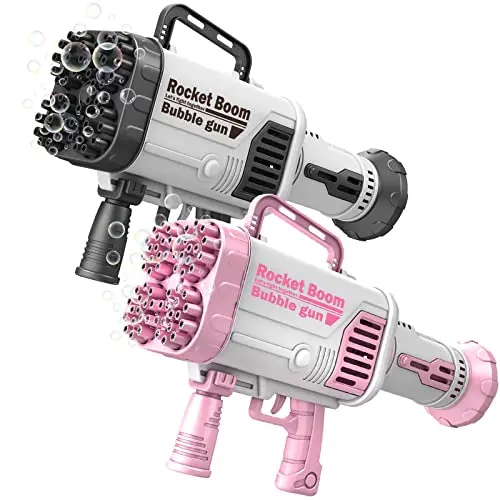 This bubble machine has a whole different experience producing hundres of bubbles per minute with a strong wind system built in. Rechargable and long lasting lithium battery will let this toy last hours each time and be enjoyable with friends and family. Tap the bubble liquid, pull the trigger and see the magic happen!